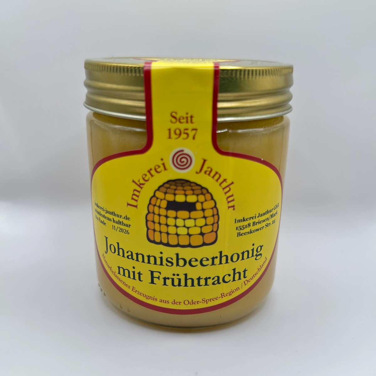 Johannisbeerhonig ist eine außergewöhnliche und seltene Honigsorte. Die Bienen sammeln ihren Nektar von den Blüten der roten, schwarzen und weißen Johannisbeere. Dadurch entsteht ein Honig, der ein besonders fruchtiges, leicht säuerliches Aroma besitzt – ganz typisch für die Johannisbeeren.