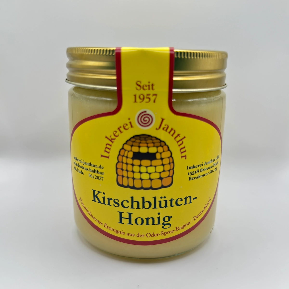 Wenn die Kirschbäume im Frühjahr ihre weißen und rosafarbenen Blüten öffnen, beginnt eine der schönsten Nektartrachten des Jahres. Der daraus gewonnene Kirschblütenhonig überzeugt durch seine feine Süße und ein sanftes, leicht fruchtiges Aroma, das an den Duft der Kirschblüte erinnert.