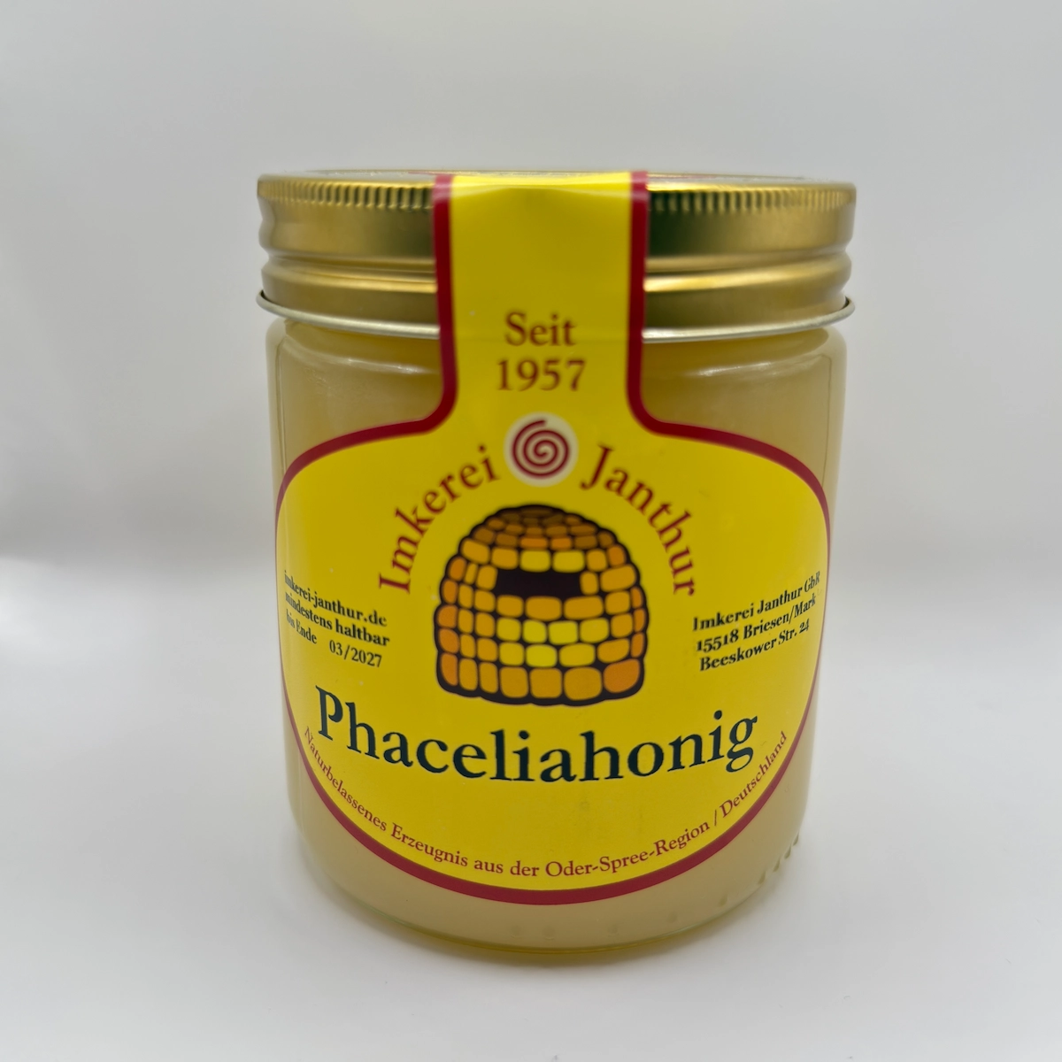 Phacelia blüht in großen, dichten Feldern – ideal für die Bienen. Dadurch entsteht ein Honig mit stabiler Qualität, feinem Aroma und einer fast schon samtigen Konsistenz.